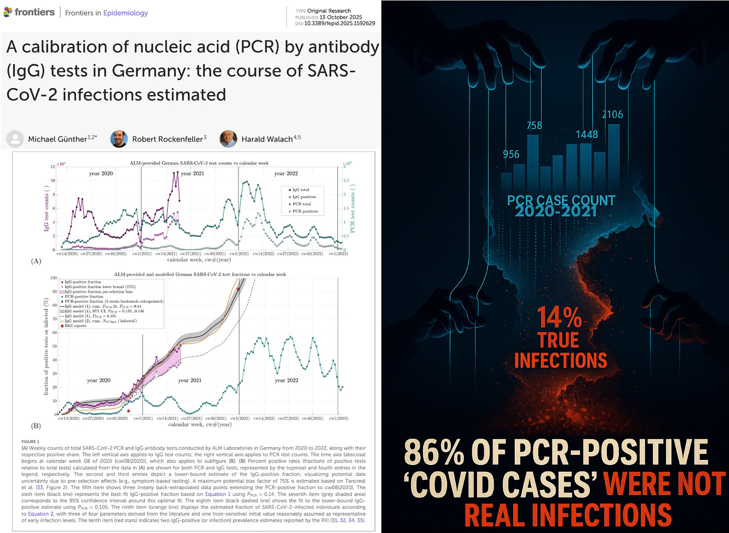 Rewriting pandemic history. If only 10–14% of reported PCR “cases” during the first year reflected true infections, then the infection-fatality rate, transmission models, and emergency declarations were all built on sand. By the end of 2020—months before vaccination began—roughly one-quarter of Germany’s population already carried natural antibodies. In other words, while authorities were declaring an uncontrolled crisis, herd-level immunity was already taking shape. By late 2021, nearly the entire population was IgG-positive. The evidence shows that pandemic policy was driven not by infection reality, but by a diagnostic illusion.